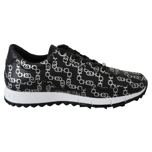 Jimmy Choo Elegant Black & Silver Leather Sneakers