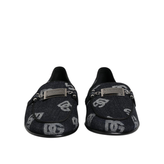Dolce & Gabbana Blue Logo Cotton Loafers Formal Dress Shoes