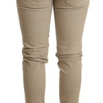 Acht Beige Cotton Slim Fit Chic Jeans er fremstillet i 100% bomuld, hvilket sikrer en utrolig behagelig pasform og åndbarhed dagen lang. Den slanke silhuet komplementerer figureret og tilføjer et strejf af feminin finesse. Med en opmærksomhed på kvalitet og detaljer, leverer disse jeans ikke kun style, men også holdbarhed i verdensklasse.