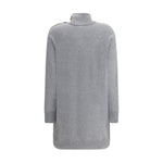 Balmain Short Cashmere Sweater Dress præsenterer sig i en smuk grå farve, der udstråler både elegance og tidløshed. Fremstillet i eksklusivt cashmere sikrer denne kjole ikke blot en uovertruffen blød følelse mod huden, men også varme på de køligste dage. Med sin rene linjer og diskrete branding udgør dette stykke en nøgtern base, der nemt kan styles op eller ned alt efter anledningen. Den er simpelthen uundværlig i enhver modebevidst kvindes garderobe.