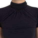 Sæt et stilfuldt præg på din garderobe med Costume National Black Turtleneck Short Sleeve Top. Denne tidløse turtleneck top er ideel til enhver lejlighed, om det er en afslappet dag på kontoret eller en aften i byen. Med sin klassiske sorte farve og rene linjer afspejler den det italienske modesmærke Costume Nationals minimalistiske æstetik.