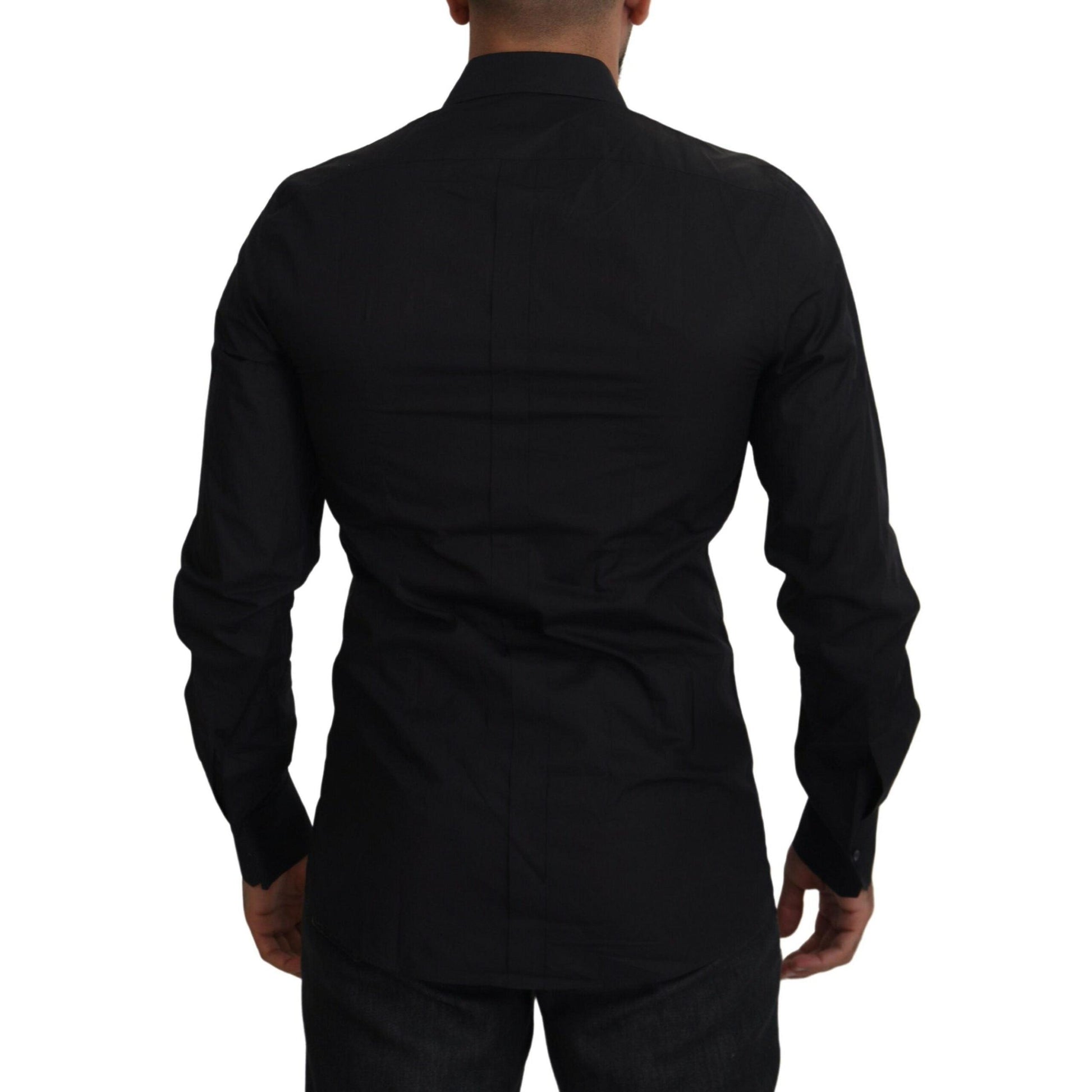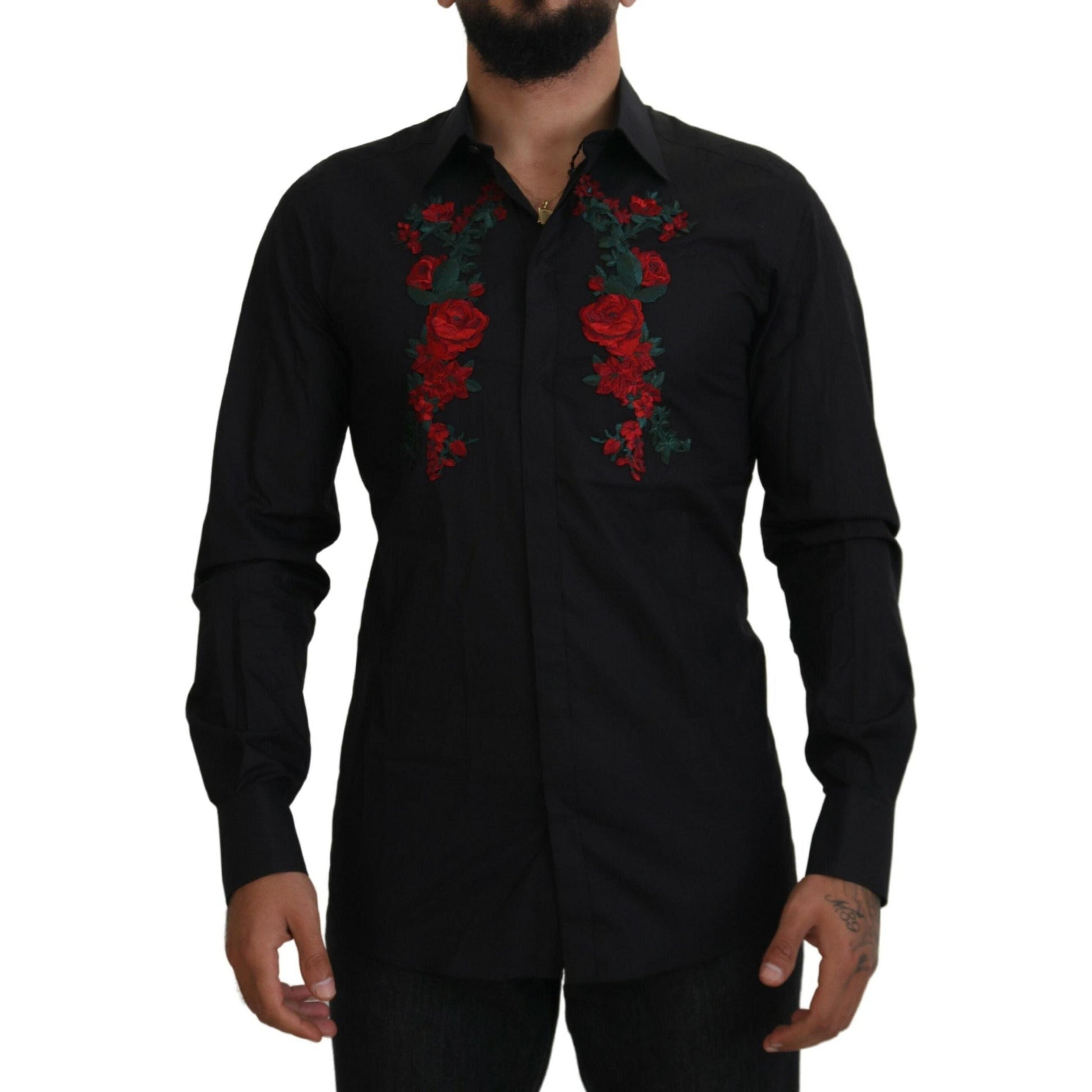 Dolce & Gabbana Black Floral Embroidery Men Long Sleeves GOLD Shirt