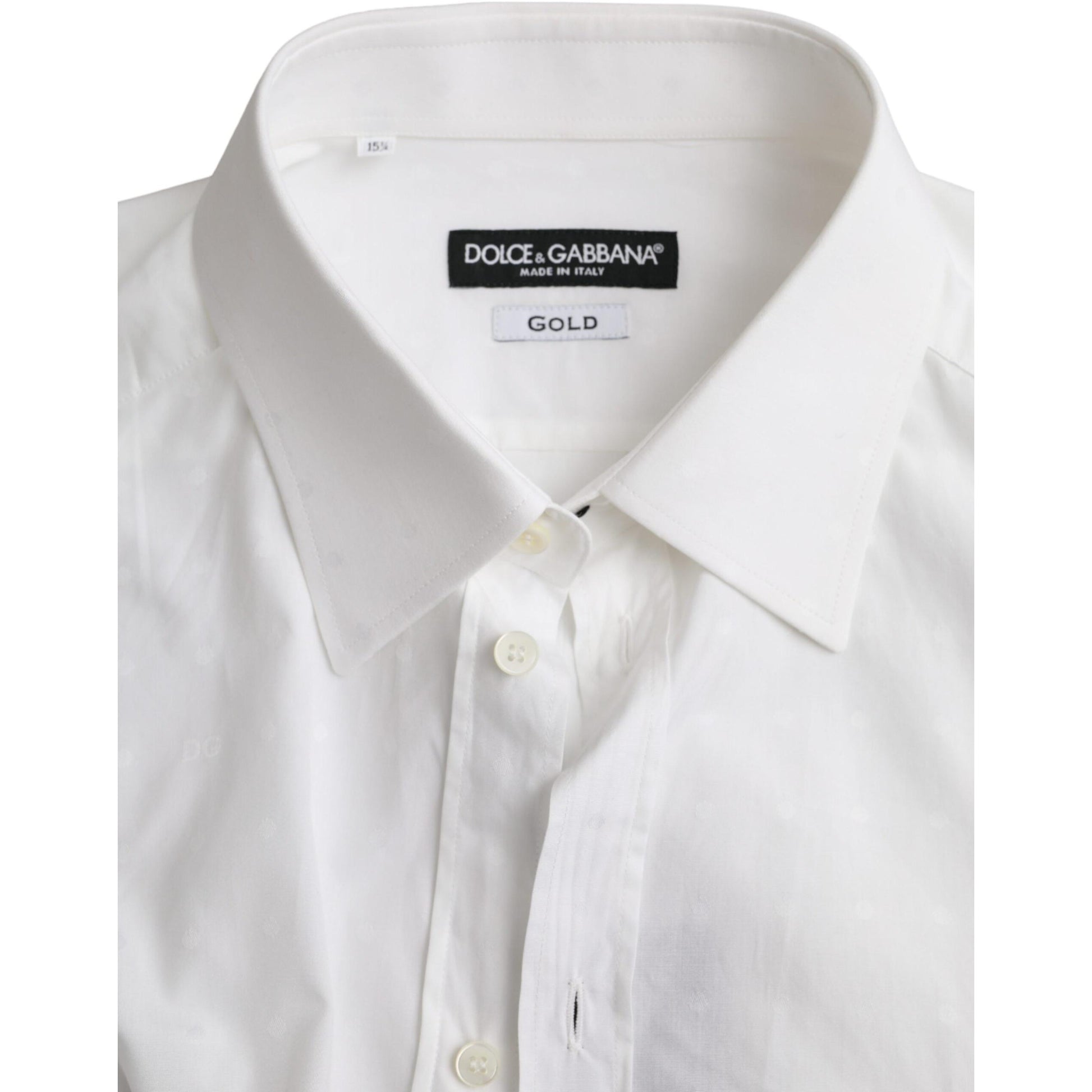 Omfavn elegance i sin reneste form med Dolce & Gabbana's White Logo Cotton Dress Shirt. Denne sublime skjorte bringer en sans for luksuriøst design ind i enhver herregarderobe. Lavet af 100% bomuld, tilbyder den uovertruffen komfort samtidig med, at den skaber et skarpt og sofistikeret look. Den rene hvide nuance tilfører et tidløst touch, mens det subtile logo på brystet understreger brandets berømte æstetik.