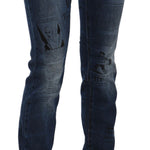 John Galliano Blue Newspaper Print Low Waist Skinny Denim Pants