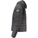 Experience the epitome of urban sophistication with Napapijri’s sleek black jacket, crafted to perfection from high-quality polyamide. This regular-fit masterpiece boasts a protective hood and savvy compartmentalization with two external pockets, complemented by an additional internal pocket for your essentials. The distinct Napapijri logo accents the design, making a bold statement, while eco-conscious trendsetters will appreciate the use of recycled materials. Elevate your wardrobe with this blend of functional elegance and environmental awareness.