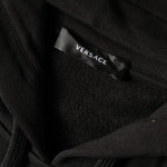Opgrader din hverdagsgarderobe med en Tilfør et strejf af luksus til din garderobe med en Versace Black Medusa Print Cotton Hoodie. Denne sort-hættetrøje er udformet i ren bomuld for at sikre ultimativ komfort og åndbarhed, og så er den prydet af det ikoniske Versace-motiv - de guldforgyldte medusa-hoveder. Dette stilrene, men kraftfulde design er derfor for manden, der ønsker at udstråle elegance, men samtidig at bevare et maskulint præg. Med et slankt, alsidigt snit, som er repræsentativt for firmaets designtraditioner, tilfører denne hættetrøje en sofistikeret stemning til enhver outfit. Den er nem at matche med forskellige underdele, hvilket betyder, at den passer perfekt ind i enhver garderobe.
